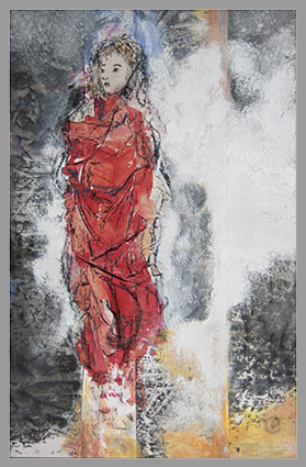 34 x 25 cm - Collage/Mischtechnik (Aquarell / Tusche / Gouache) auf farb. Papier